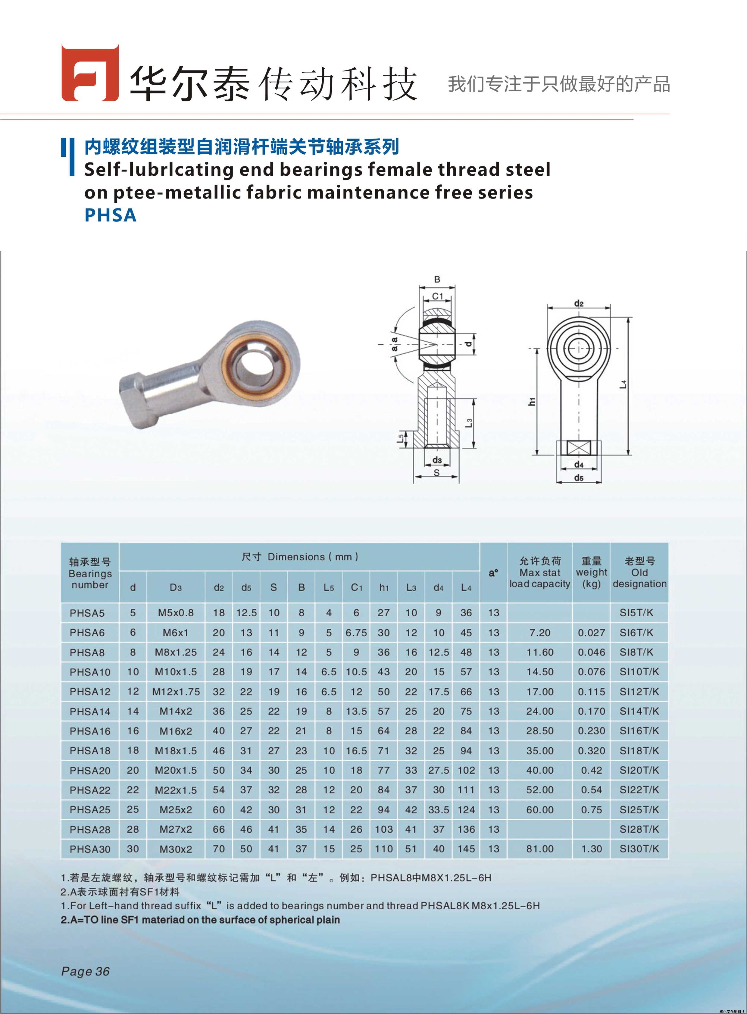 PHSA內螺紋帶油嘴桿端關(guān)節軸承